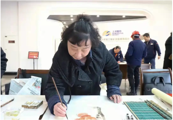 此次活動(dòng),公司邀請(qǐng)了來(lái)自市書(shū)法協(xié)會(huì)的書(shū)法老師們蒞臨現(xiàn)場(chǎng),展示書(shū)法藝術(shù)精髓,弘揚(yáng)中國(guó)特色的傳統(tǒng)民間文化?!按猴L(fēng)浩蕩展鴻圖、虎步奔騰開(kāi)勝景”、“茶緣廣裕業(yè)有孚、新程奮進(jìn)正當(dāng)時(shí)”......老師們妙筆生花,一對(duì)對(duì)喜氣的虎年春聯(lián)、年畫(huà),烘托出濃濃年味;一句句美好的祝福,伴著墨香暖人心扉。上洋家人們趁工作休息間隙紛紛前來(lái)挑選心儀的虎年春聯(lián)、年畫(huà),與老師們合影留念,現(xiàn)場(chǎng)一片溫馨祥和的喜慶氣氛。