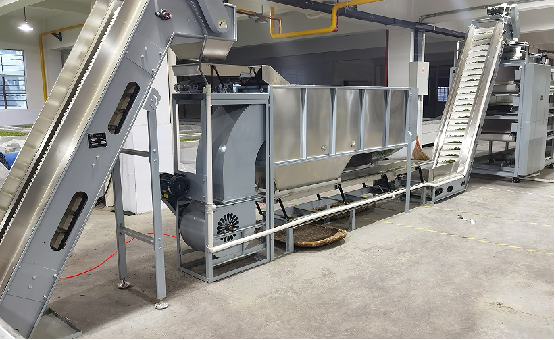 機組組成:本機組由進(jìn)料輸送機、勻葉振動槽、風(fēng)選機、出料輸送機、機組集成控制系統(tǒng)組成。