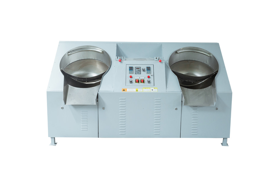(2)、雙鍋曲毫炒干機適用于各類卷曲型、球型名優(yōu)茶的做型炒制作業(yè)。目前市場上有50、60兩種鑄鐵鍋和壓制鍋兩種,壓制鍋外形更好,但在加熱后易變形,引起抄板和鍋子卡死或間隙變大,從而增加碎茶或炒制茶葉外形不緊,鑄鐵鍋不存在這種現(xiàn)象,我公司一直使用鑄鐵鍋,50型采用掛擋調速、60型采用變頻調速。