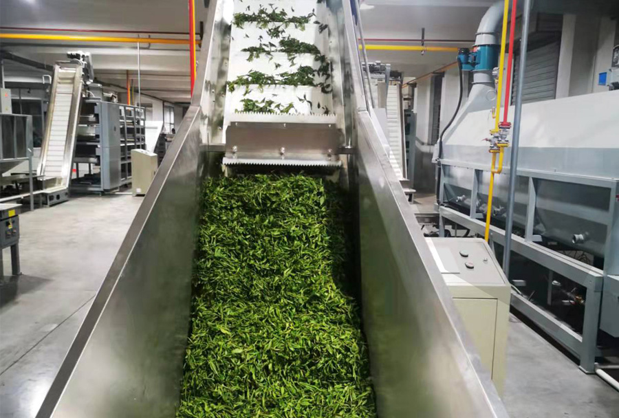 茶葉輸送機(jī)是茶葉加工生產(chǎn)線的重要組成部分,分皮帶式、振動槽式等,可平面輸送、高低錯位輸送,根據(jù)需要再配套勻葉、清理、調(diào)速、除塵等裝置,在整個生產(chǎn)線中起到連接主機(jī)、控制產(chǎn)能、平衡流量等功能,是生產(chǎn)線實現(xiàn)不落地、清潔化生產(chǎn)必不可少的配套設(shè)備。